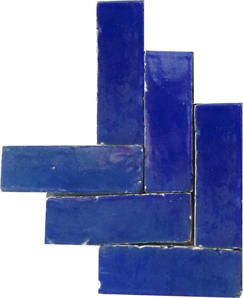 Bring tidløs elegance ind i dit hjem med autentiske håndlavede Bejmat-fliser i blå, fremstillet ved hjælp af århundredgamle teknikker i Fez, Marokko. Hver flise er individuelt formet og ovnbrændt, hvilket resulterer i en unik overflade fuld af rig tekstur og subtile farvenuancer.