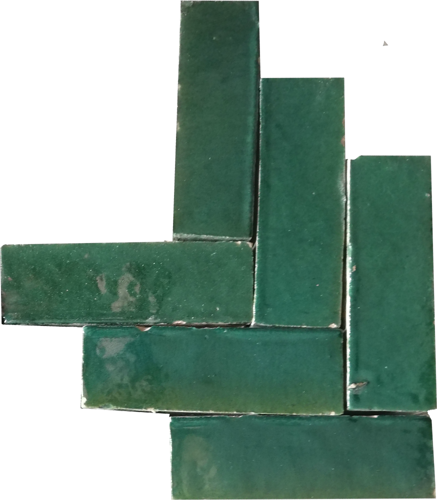 Bring tidløs elegance ind i dit hjem med autentiske håndlavede Bejmat-fliser i grøn, fremstillet ved hjælp af århundredgamle teknikker i Fez, Marokko. Hver flise er individuelt formet og ovnbrændt, hvilket resulterer i en unik overflade fuld af rig tekstur og subtile farvenuancer.