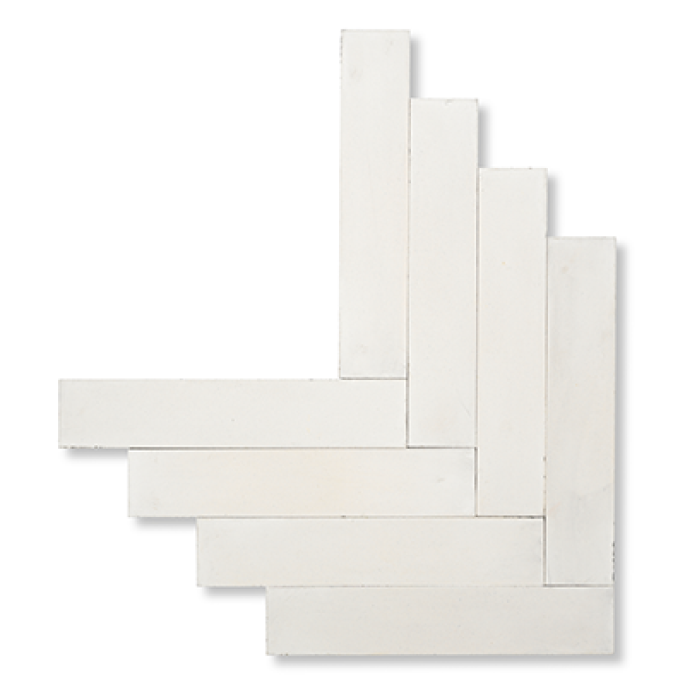 Design dit hjem med en udsøgt håndlavet sildebensflise i hvid, udviklet ved hjælp af en tolags-teknik med et slidstærkt marmor-toplag. Hver flise måler 6 x 30 cm og har en moderne stil, der giver et elegant udtryk til dit interiør.