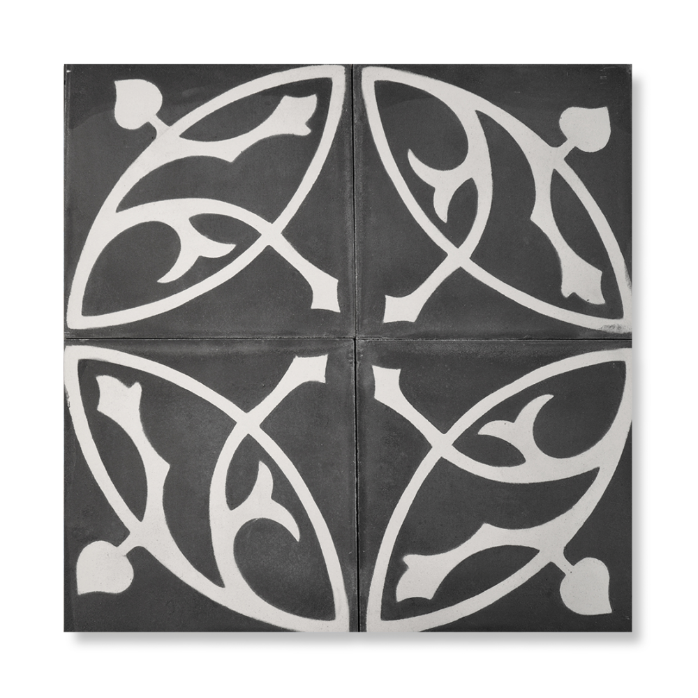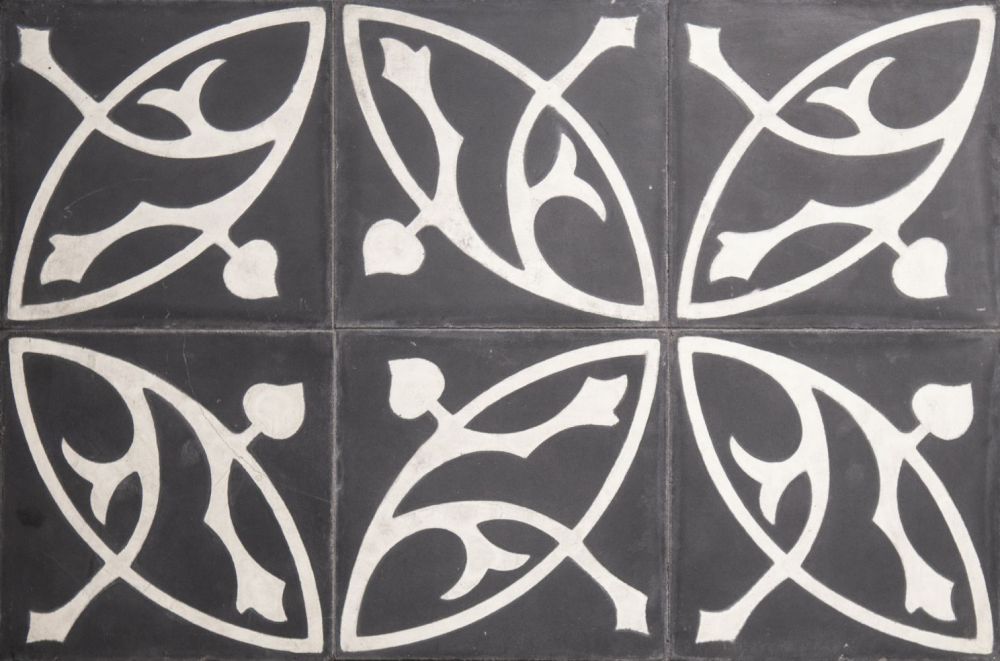 En håndlavet art nouveau cementflise med et klassisk motiv, der fås i kombinationer af alle 30 farver. Desuden kan de bestilles i andre størrelser i kvadratisk form.