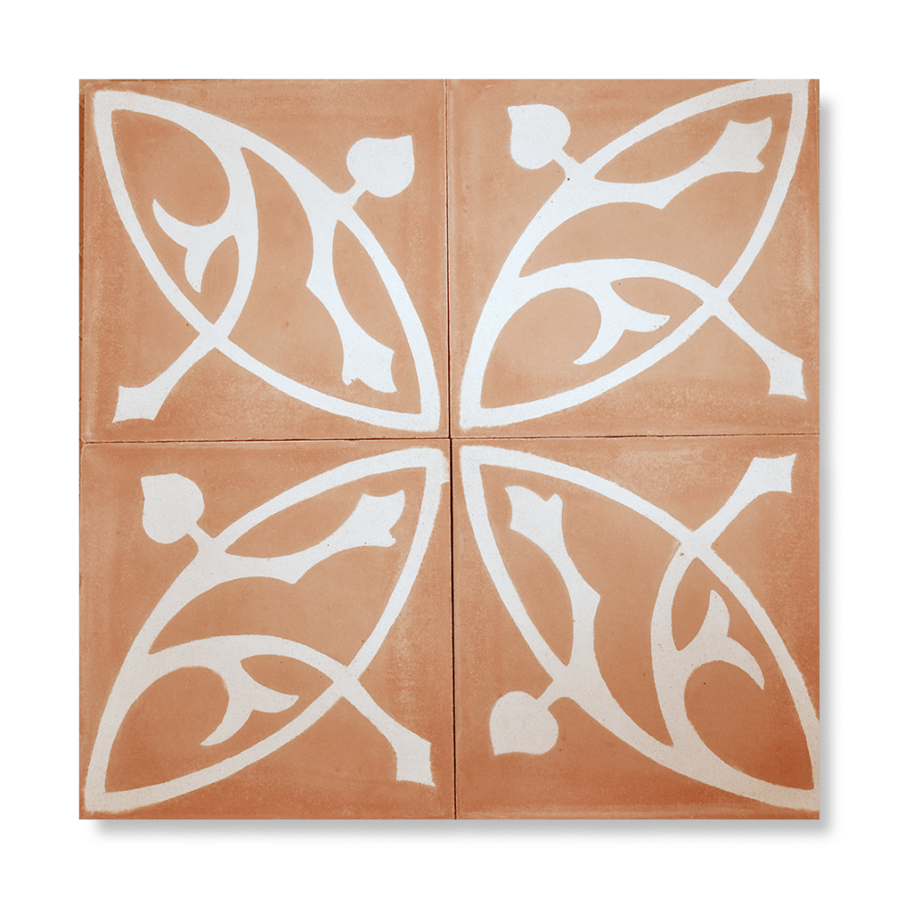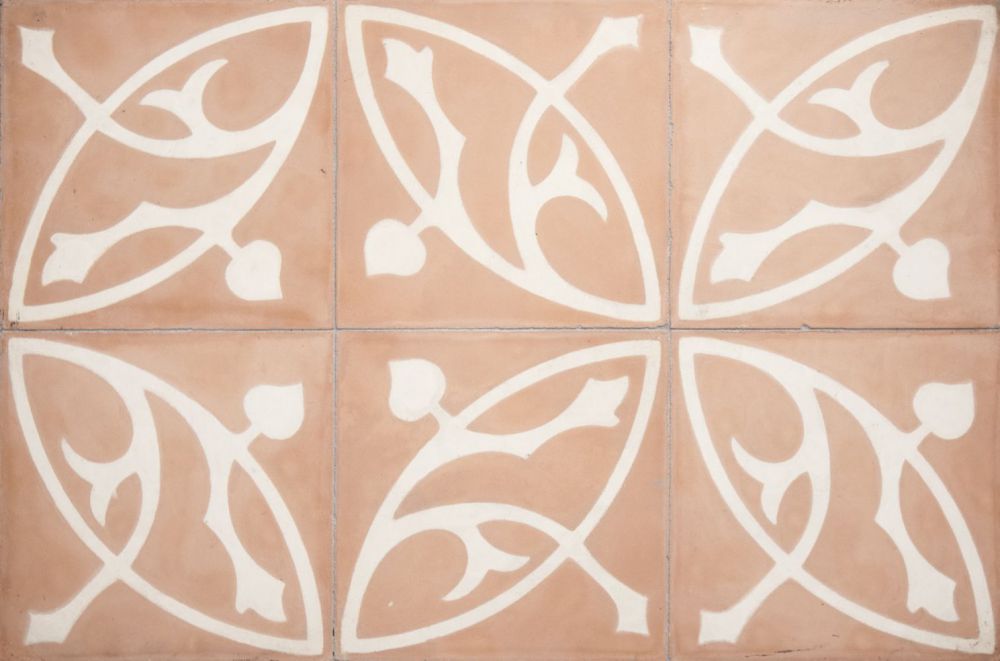 En håndlavet art nouveau cementflise, der fås i kombinationer af alle 30 farver. Desuden kan de bestilles i andre størrelser i kvadratisk form.