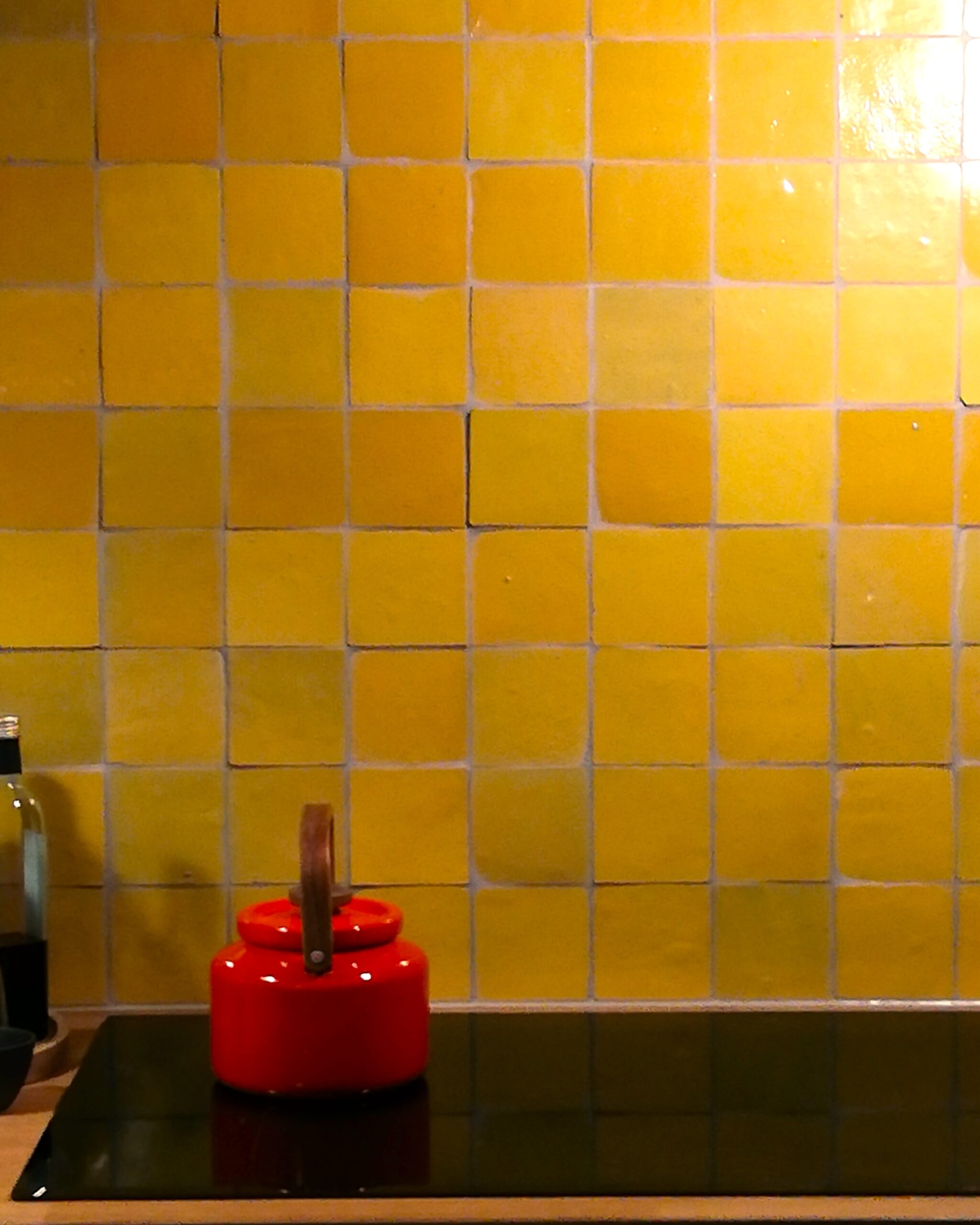 Håndlavede zellige fliser i gul er perfekte til køkkener og badeværelser. Zellige fliser er indbegrebet af ægte håndværk— hver flise er unik.
