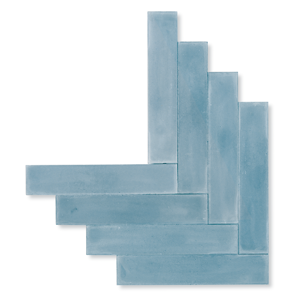 Design dit hjem med en udsøgt håndlavet sildebensflise i lyseblå, udviklet ved hjælp af en tolags-teknik med et slidstærkt marmor-toplag. Hver flise måler 6 x 30 cm og har en moderne stil, der giver et elegant udtryk til dit interiør.
