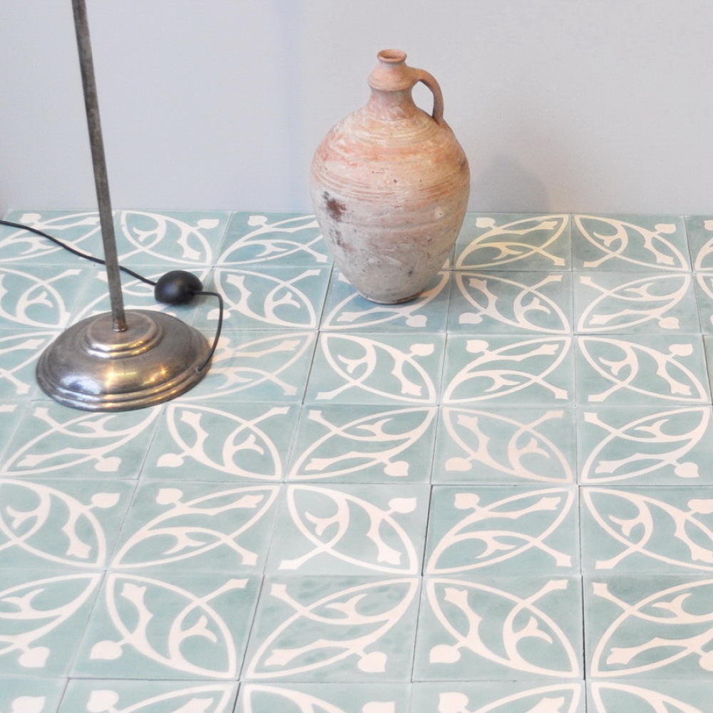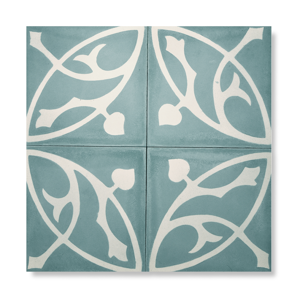 En håndlavet art nouveau cementflise i klassisk stil, der fås i kombinationer af alle 30 farver. Desuden kan de bestilles i andre størrelser i kvadratisk form.